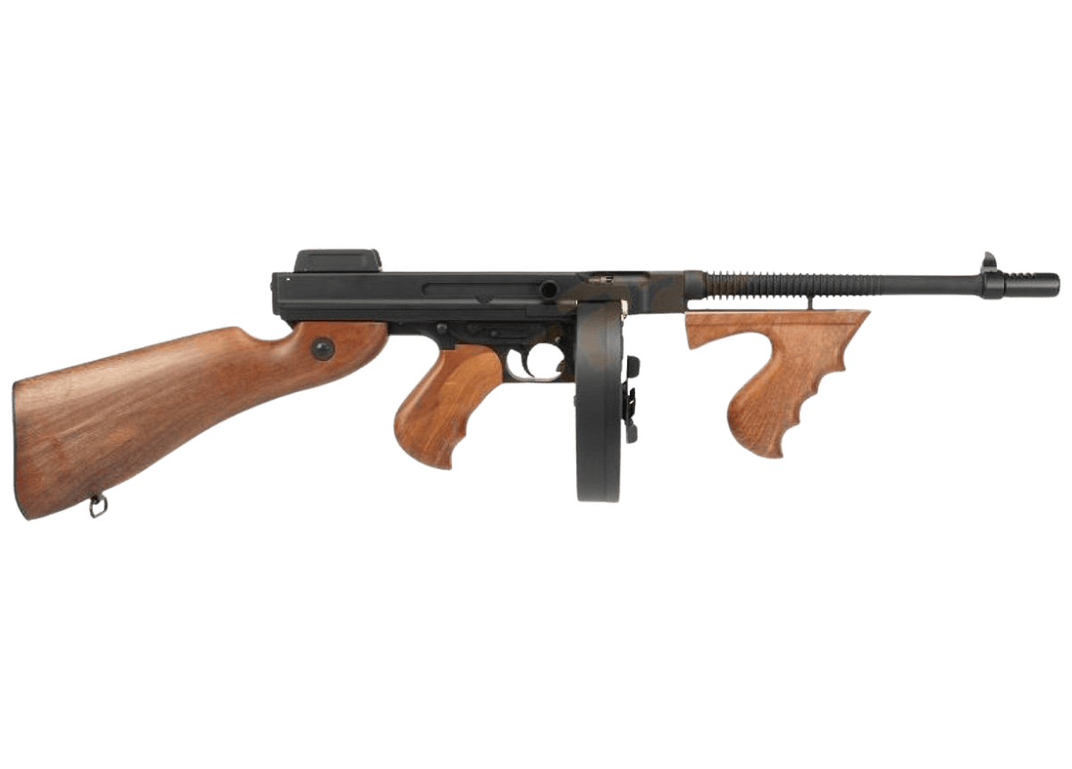 O Cyma Chicago 'Tommy Gun' é uma arma de aparência maravilhosa e tem um corpo de metal completo de alta qualidade, uma Magazine de metal de alta tampa e apertos de efeito de madeira sintética de alta qualidade e estoque. Este é o icônico design de Gangster de Chicago com um cano externo com nervuras e um compensador tradicional, garantido para atingir o estilo de terror de 1920 nos corações dos seus oponentes!