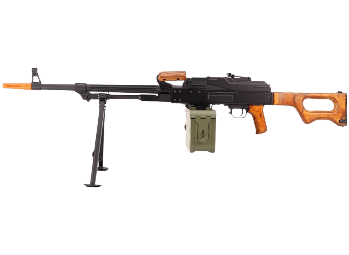 Conheça a metralhadora airsoft A&K PKM SQUAD com coronha de madeira, projetada para simular a autêntica PKM original. Este equipamento automático oferece alta precisão e fogo contínuo para uso em jogos de airsoft e treino esportivo. A PKM é reconhecida por sua robustez e durabilidade, garantindo desempenho confiável em atividades outdoor. Seu design inclui partes em madeira que dão um toque realista e confortável.