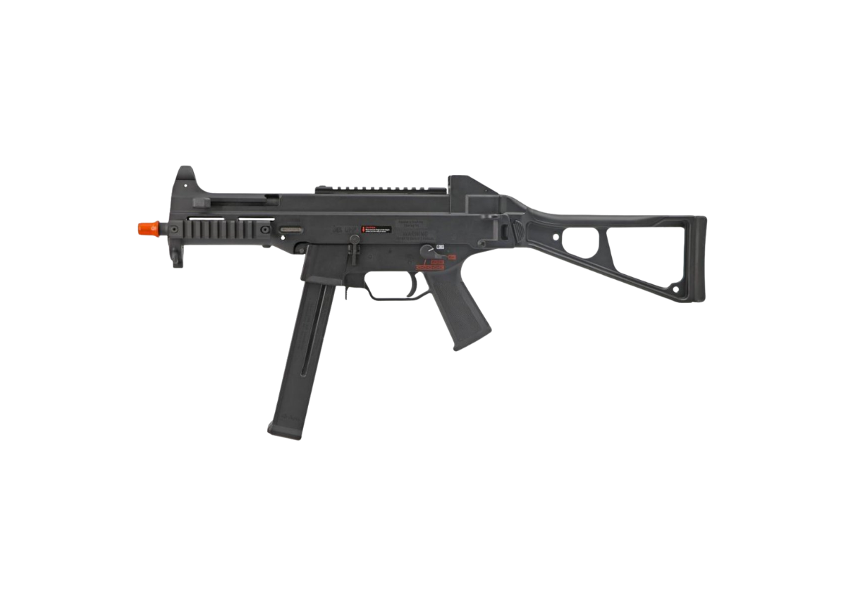 O H & K UMP (Universal Maschinenpistole, Pistola Universal) foi desenvolvido e fabricado como leve e mais barato para produzir o sucessor do venerável MP5. O UMP utiliza polímeros de alta tecnologia para a grande maioria das armas de fogo para ajudar a reduzir o peso geral também como tornar a arma de fogo menos suscetível aos elementos e à corrosão. Outras características incluem 4 configurações diferentes de grupo de disparo (safe / semi / 2rd burst / full auto), um buttstock dobrável lateral para ajudar a reduzir o perfil de arma para transporte, trilhos acessórios Picatinny e um bloqueio de bolt que engatará após a última rodada é disparamos.