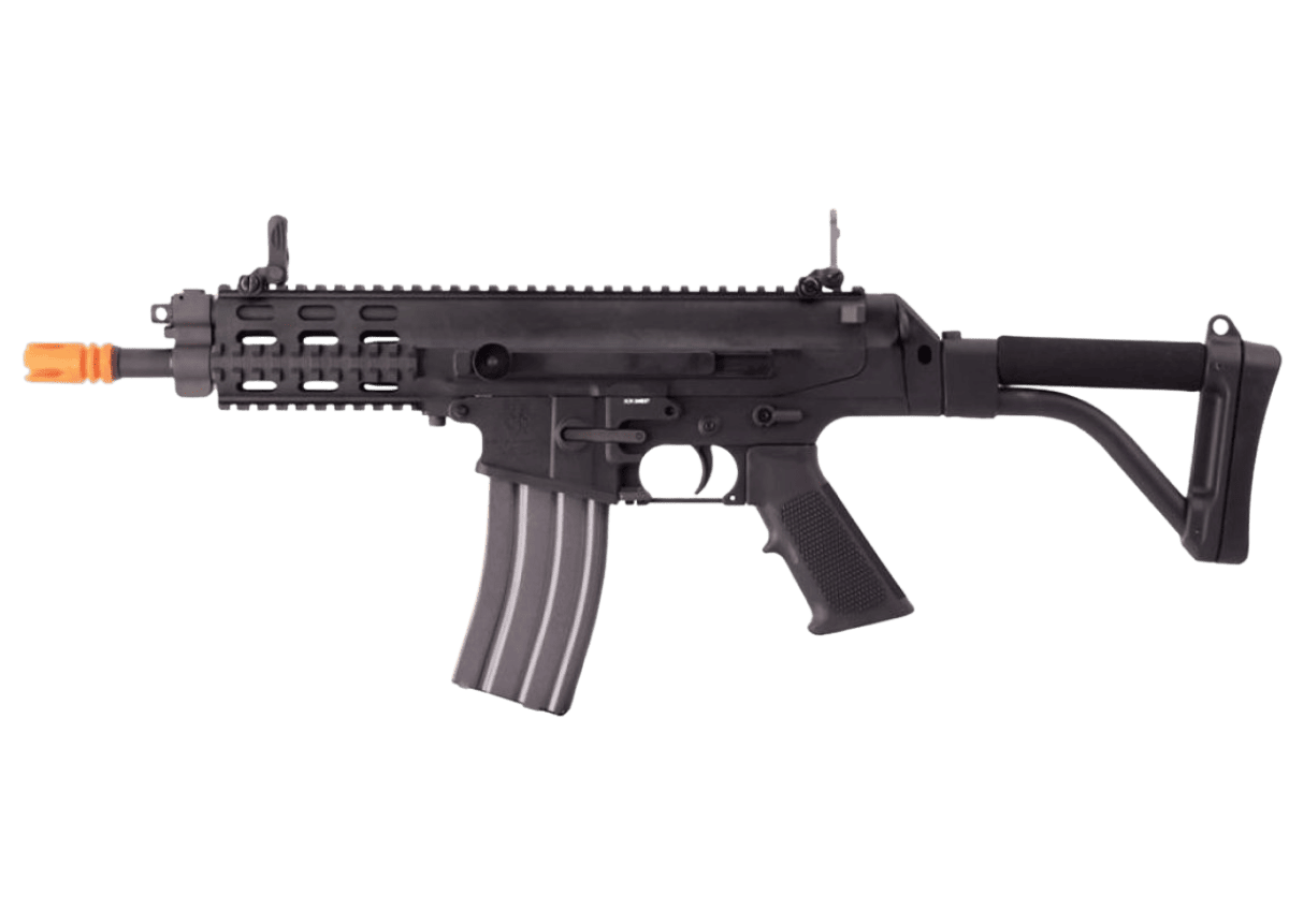 Rifle de airsoft compacto ideal para jogos CQB e uso em espaços pequenos. Com um design ergonômico, possui um estoque dobrável e trilho picatinny que permite fácil adaptação de acessórios táticos, garantindo excelente manuseio e precisão. Seu cano e estoque mais curtos oferecem praticidade para transportar e armazenar o equipamento. Além disso, o modelo mantém uma potência eficaz, sendo recomendado para jogos que exigem agilidade e mobilidade.